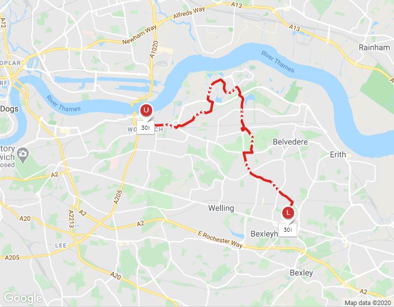 Route departing Bexleyheath[]